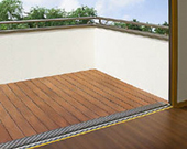 フルフラットフロアIIとノンレールサッシを組み合わせれば、室内とバルコニーの段差がなくなり、バルコニーをリビングの延長としてひろびろと使うことができます。木粉50%配合のリサイクル樹脂 |